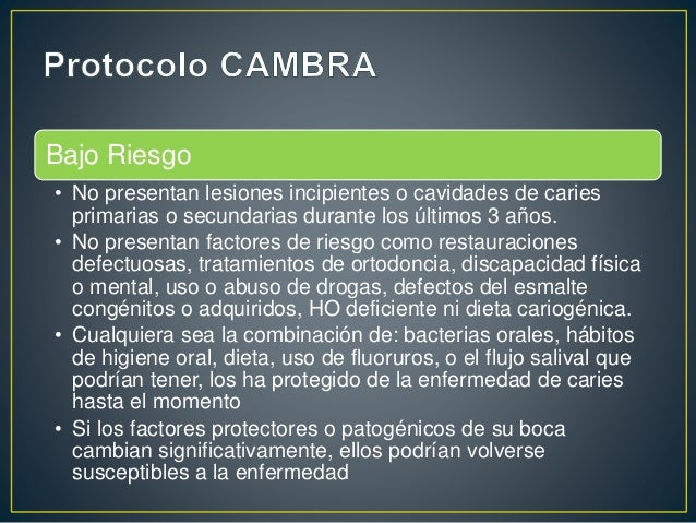 Pacientes con bajo riesgo :Paciente libre de caries o al examen dental